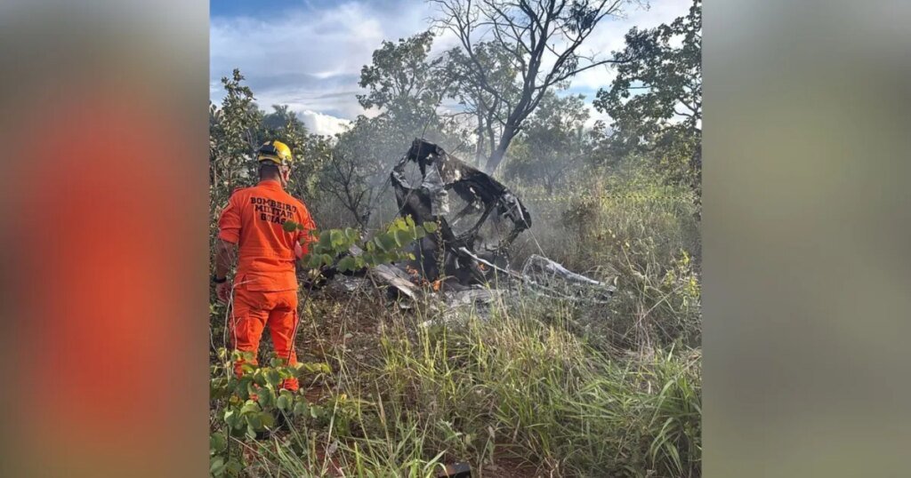 Uma aeronave de pequeno porte caiu em uma área de reserva nesta terça-feira (24), no município de Formosa, no entorno do Distrito Federal, próximo a Brasília, e provocou um incêndio.