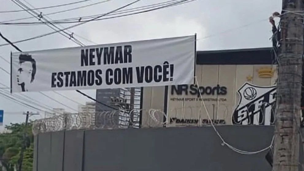 Um dia depois de virar alvo de protestos, Neymar voltou a ser tema de manifestação em frente ao CT Rei Pelé. Na manhã desta sexta-feira (14), uma nova faixa foi colocada no local, desta vez em tom de apoio ao camisa 10 do Santos.