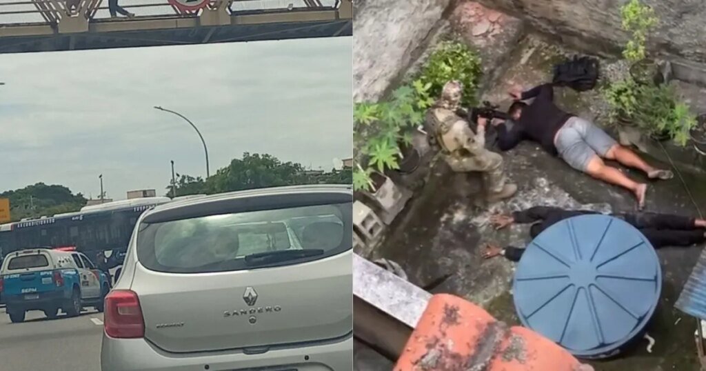 Ainda conforme a Polícia Militar, após informações do setor de inteligência, agentes se deslocaram até a comunidade Vila do João, onde localizaram dois homens no interior de uma residência, após autorização do morador. De acordo com a ocorrência, os suspeitos tentaram fugir por telhados e lajes de imóveis vizinhos, sofrendo escoriações e contusões durante a ação.