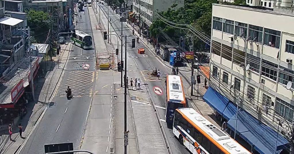 Em retaliação à ação policial, indivíduos utilizaram ônibus para obstruir a Rua Cândido Benício, na Praça Seca, Zona Sudoeste do Rio de Janeiro. Policiais militares do 18º BPM e do Batalhão de Rondas Especiais e Controle de Multidões (RECOM) atuam no local.