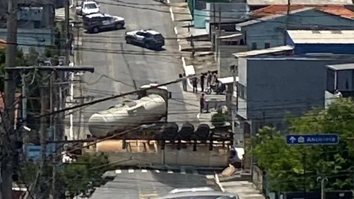 Um caminhão que transportava etanol tombou e atingiu outro veículo nesta sexta-feira (20), no bairro do Sacomã, na Zona Sul de São Paulo. O Corpo de Bombeiros foi acionado para conter o vazamento da carga inflamável.