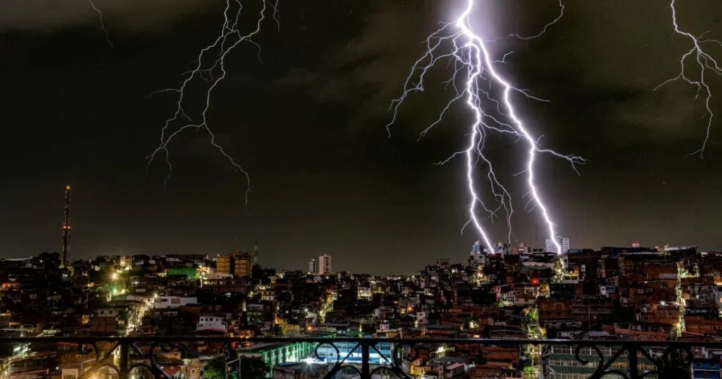 A noite de domingo (29) foi marcada ainda por raios e trovoadas. Vídeos e imagens do temporal circularam nas redes sociais, mostrando ruas alagadas e a intensidade da chuva em diversos bairros da capital baiana.