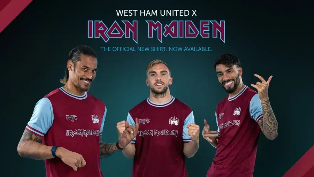 O West Ham United e a banda britânica Iron Maiden anunciaram nesta sexta-feira (7) o lançamento de uma camisa comemorativa que celebra dois marcos históricos: os 50 anos da conquista da FA Cup de 1975, pelo clube, e o 50º aniversário de formação da banda.