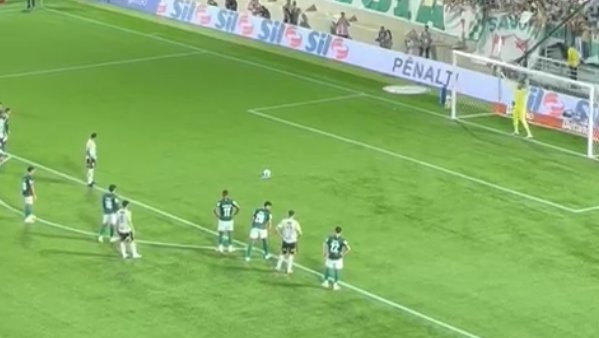 Ao se aproximar da área, o atacante recebeu contato de Gustavo Gómez e caiu no gramado. O árbitro assinalou pênalti no lance, mas a decisão foi contestada pelos jogadores do Palmeiras, que alegaram que a infração ocorreu fora da área.