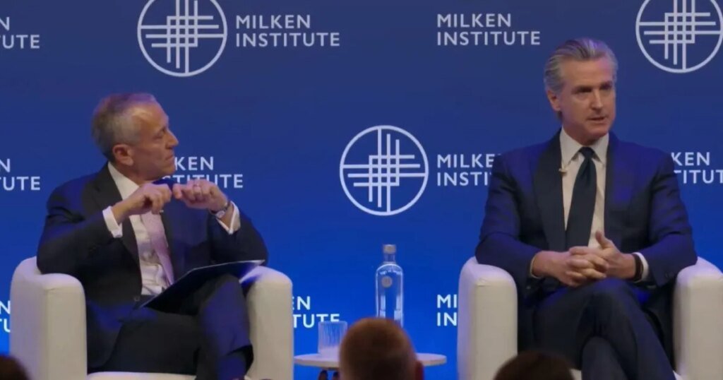 Newsom disse, ainda, que as questões climáticas nos Estados Unidos em nível federal são “uma guerra ideológica” e que “seguir o dinheiro capturou os interesses”.