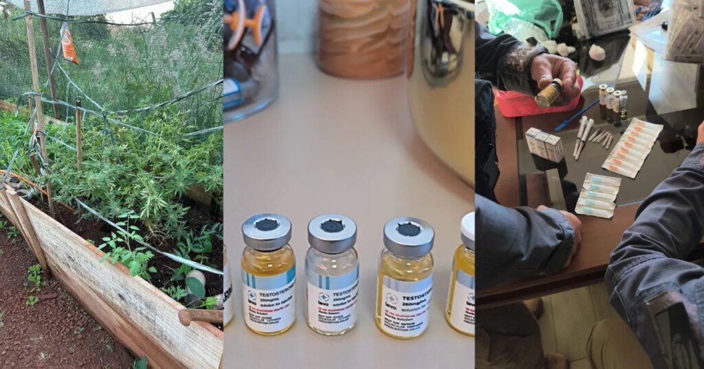 Entre as dez prisões, o MP informou que duas foram temporárias e oito em flagrante. Também foram apreendidas quantidades significativas de anabolizantes e uma estufa de maconha.