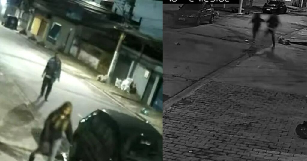 Logo em seguida, em outro ângulo, a menina percebe que está sendo perseguida e acelera os passos, porém o indivíduo corre atrás da vítima e lhe ataca.