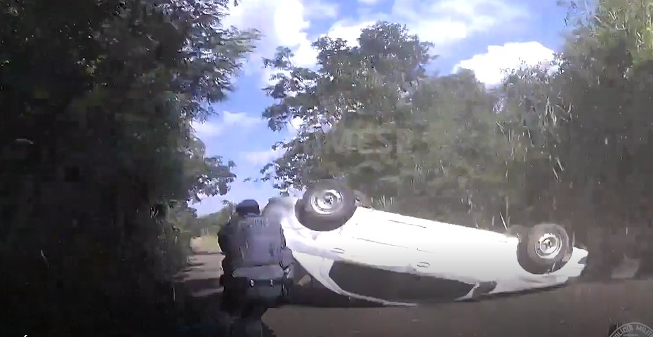 Depois do acidente, os policiais ouviram o choro da menina e quebraram o vidro do veículo para resgatá-la em segurança.