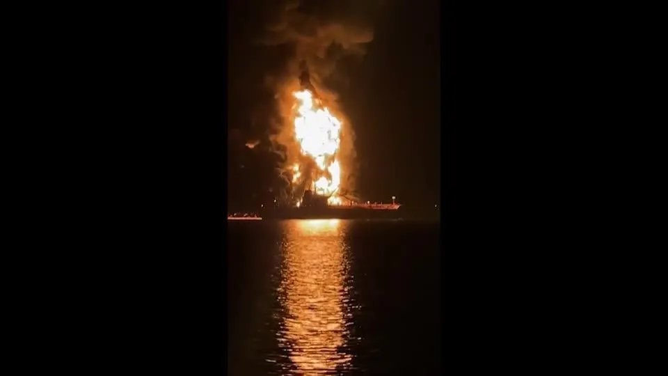 Um tripulante morreu e 38 foram resgatados dos petroleiros que pegaram fogo no Golfo Pérsico após serem atingidos pelo que se acredita ser um drone aquático iraniano.