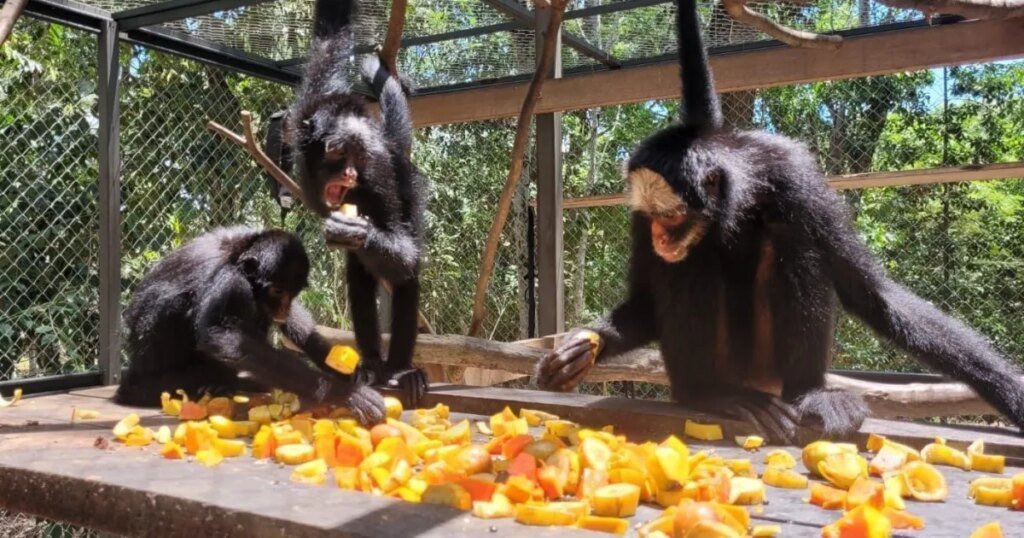 Os macacos-aranha-da-testa-branca viviam de forma provisória Centro de Vida Selvagem (CeVS), da Universidade Federal do Mato Grosso campus Sinop, após serem resgatados.