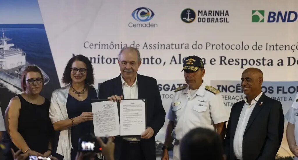 O BNDES (Banco Nacional de Desenvolvimento Econômico e Social), a Marinha do Brasil e o Cemaden (Centro Nacional de Monitoramento e Alertas de Desastres Naturais) firmaram nesta sexta-feira (7), em Belém, um protocolo de intenções para cooperação em prevenção, monitoramento e resposta a desastres naturais.