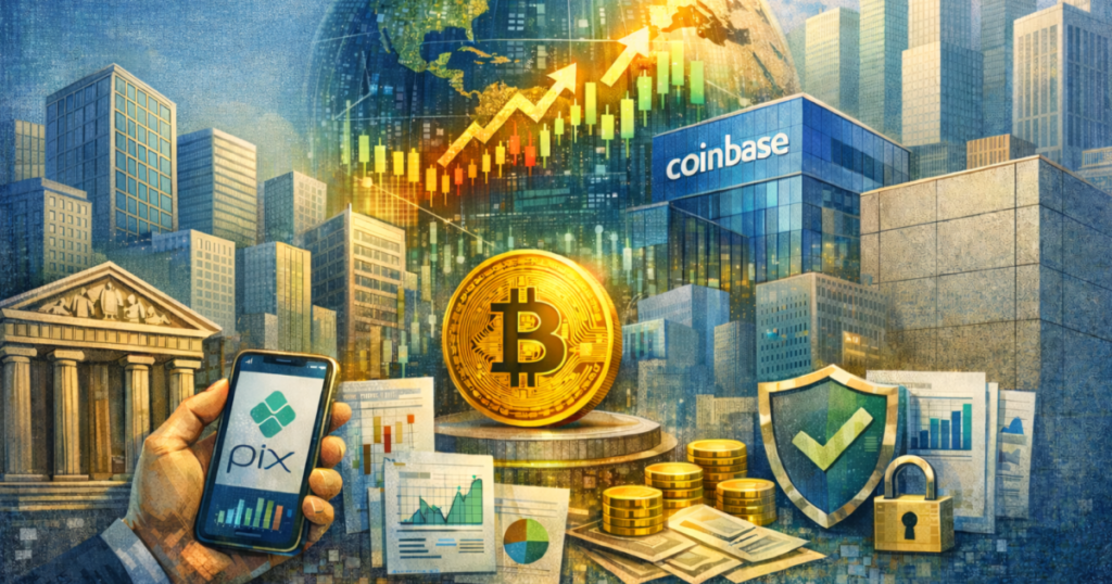 Entre as principais plataformas globais presentes no Brasil, a Coinbase passou a simbolizar essa transição ao adotar uma estrutura comparável à de empresas financeiras tradicionais. Em 2021, tornou-se a primeira grande exchange focada em ativos digitais a abrir capital nos Estados Unidos, submetendo-se às regras da Securities and Exchange Commission (SEC).