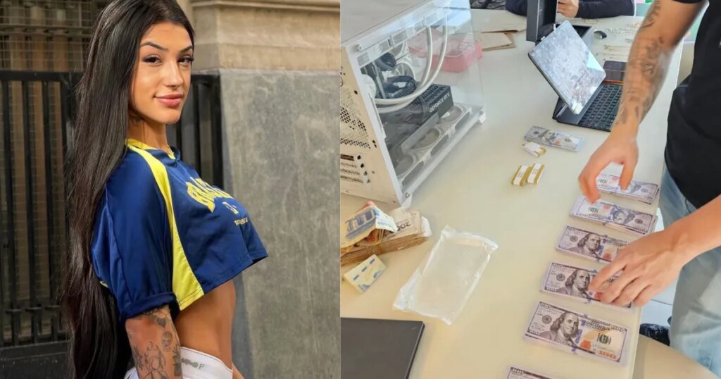 Durante o cumprimento de mandado de busca e apreensão na residência da investigada, os policiais encontraram cerca de US$ 40 mil dólares em cédulas cenográficas. Aos agentes, a influenciadora afirmou que utilizava o material na produção de conteúdos para redes sociais, com o objetivo de atrair seguidores e possíveis apostadores para plataformas online.