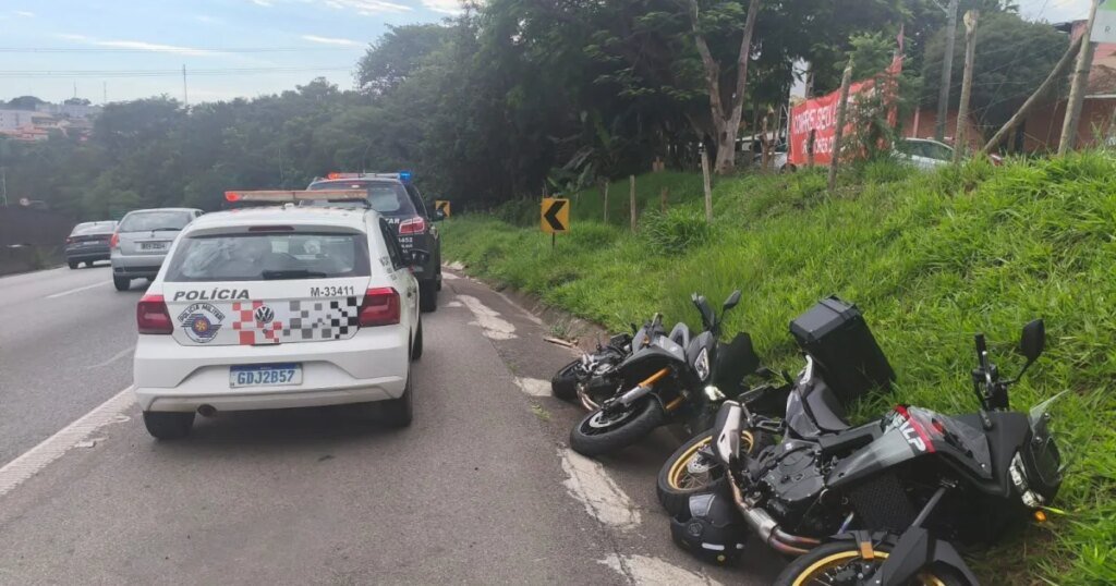 Dois homens foram presos na manhã deste domingo (15), após roubarem duas motocicletas na Rodovia Raposo Tavares, na altura do km 37, em Cotia.