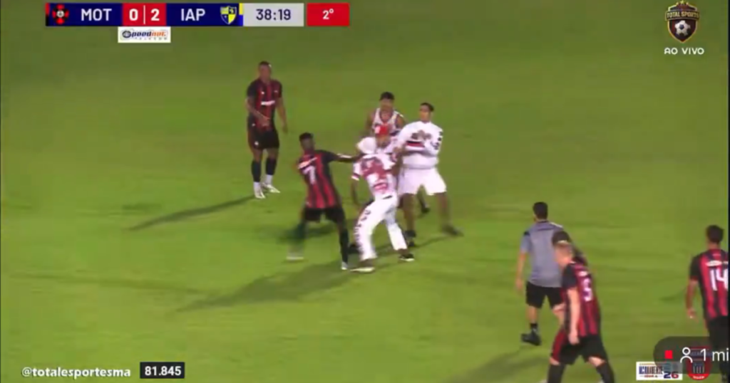 Uma pancadaria generalizada tomou conta do gramado do Estádio Municipal Nhozinho Santos, em São Luiz, no Maranhão.
