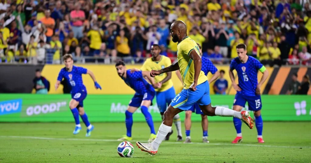 Igor Thiago, de 24 anos, bateu bem, deslocando Livakovic, e fez o segundo gol da Seleção na vitória por 3 a 1, minutos depois de o time ter sofrido o empate da Croácia.