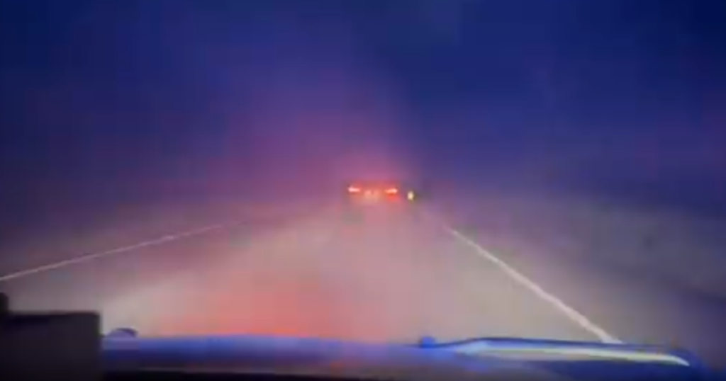 Durante a perseguição, o suspeito acionou um dispositivo de emissão de fumaça pelo escapamento do carro, o que dificultou a visualização na estrada. Para pará-lo, os policiais usaram um dispositivo dilacerador de pneus para conter o veículo.